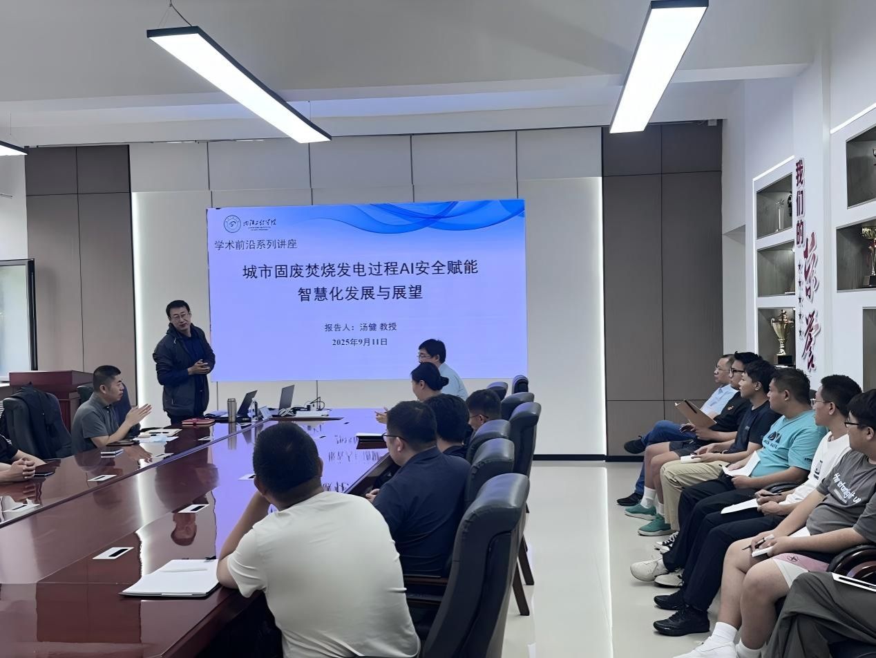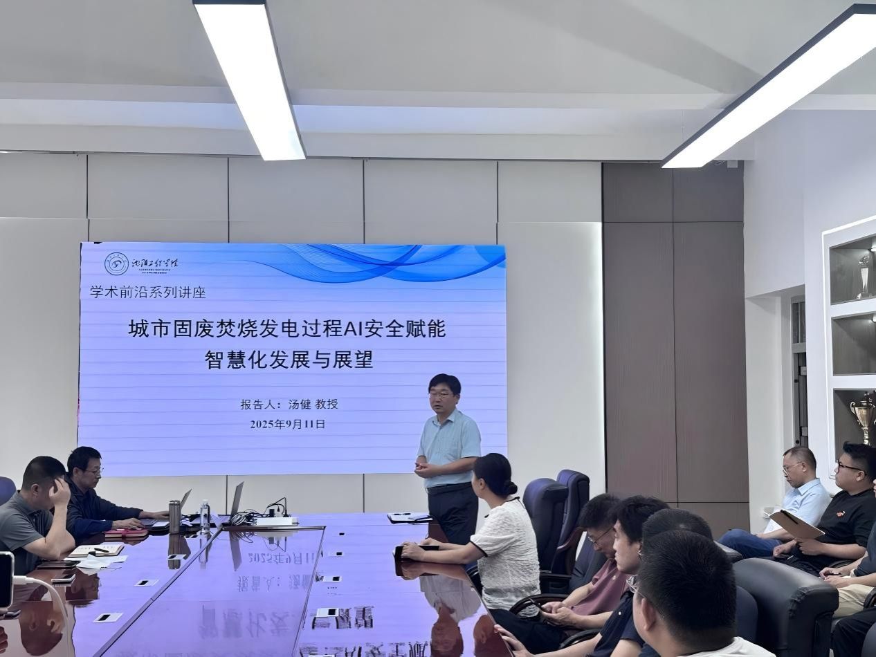 报告中,汤健教授围绕城市固废焚烧(MSWI)发电这一实现全球城市环境可持续发展的关键技术展开,结合我国固废特性,深入分析MSWI发电过程特性,从AI赋能能力、智慧化发展路径等维度进行阐述,同时展望未来研究方向并分享团队研究成果。报告后,还围绕国家自然科学基金项目申报与控制工程专业研究生培养等议题进行了深入交流。