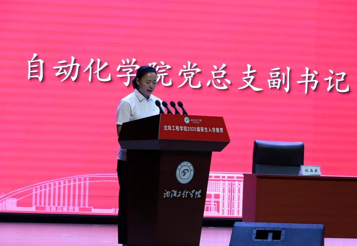 电子信息工程系包妍老师作为教师代表发言,她在发言中融入深切关怀与学术指引,寄语新生保持好奇、勤于发问,不仅要深耕专业、锤炼技能,更要在协作中学会包容,在挫折中磨砺心性,成为有温度、有担当的自动化人。